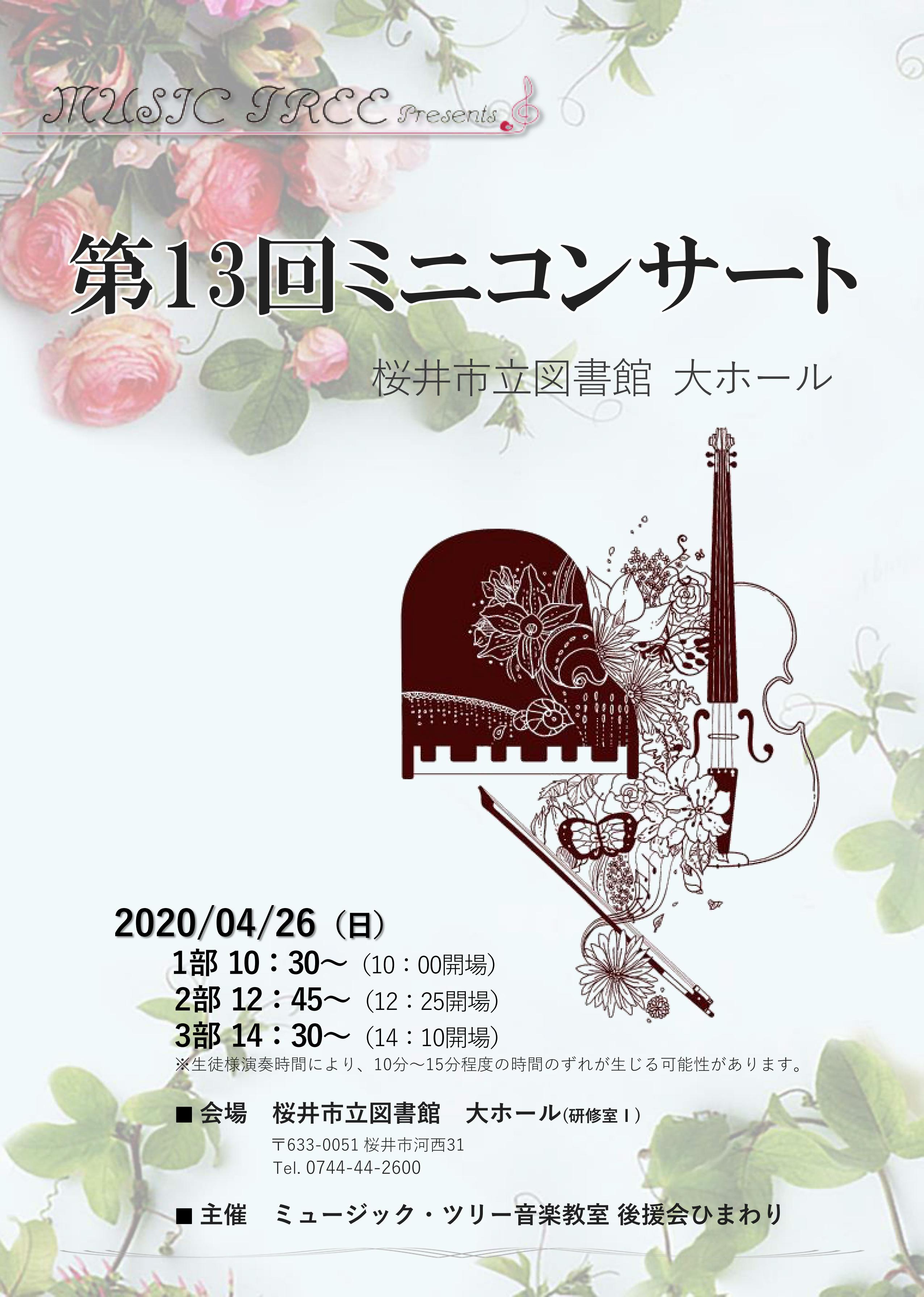中止が決定しました「第13回ミニコンサート(発表会)」プログラム完成 | 2020/04/26㈰